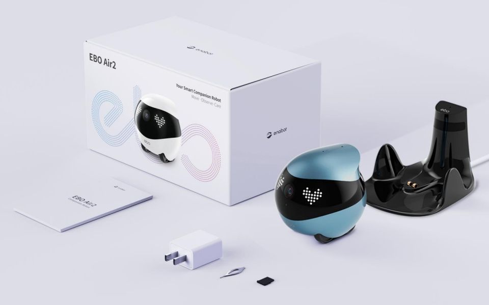 Smart Pet Robot Ebo Air 2 + Caméra HD 2K + Recharge automatique + Contrôle d'application à distance pour une surveillance complète à domicile