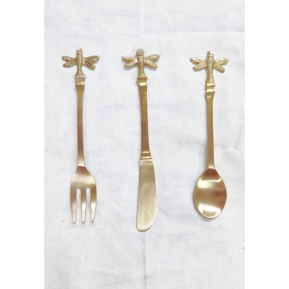 Ensemble de couverts miniatures en laiton massif à vendre, avec poignée à motif floral et plaqué or, pour hôtel, ensemble de couverts de qualité supérieure