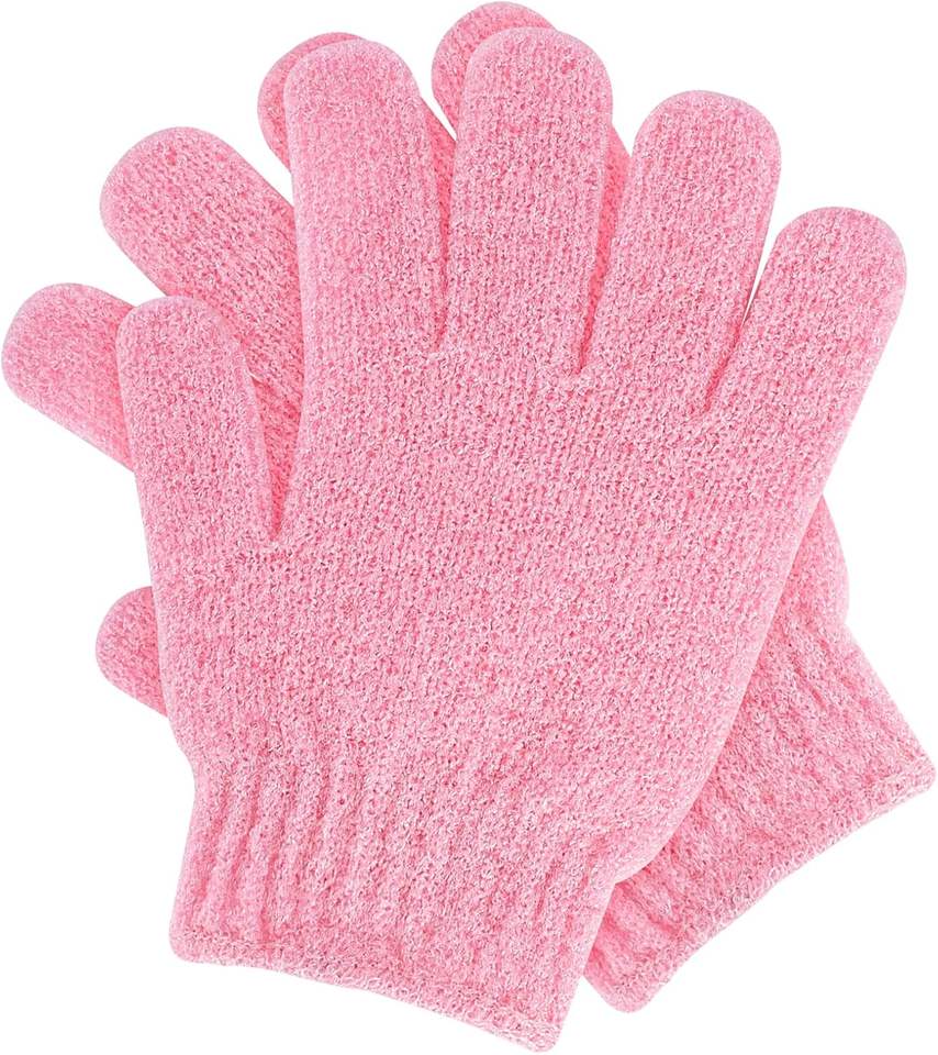 Nom du produit:Gants de bain exfoliants pour le corps, cinq doigts, en nylon, couleur unie rose