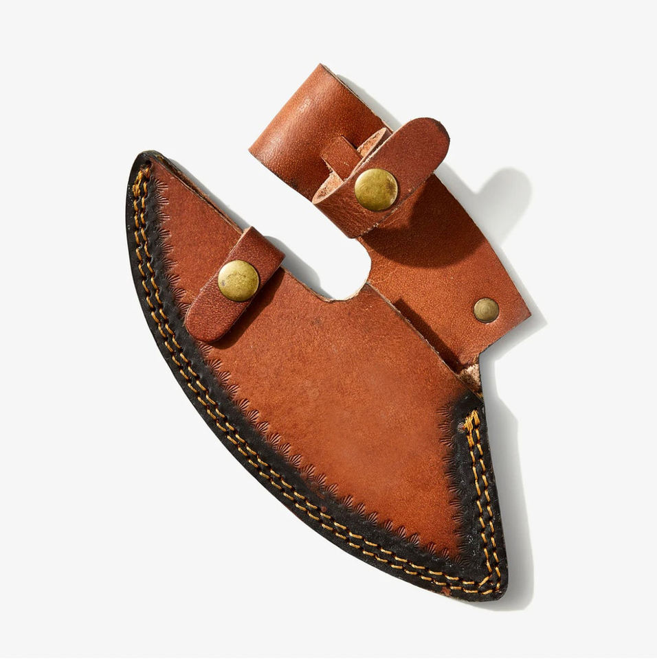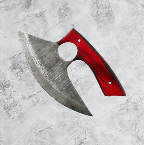 Couteau Ulu damas fait à la main de couleur unie avec manche en bois et gaine en cuir au prix de gros