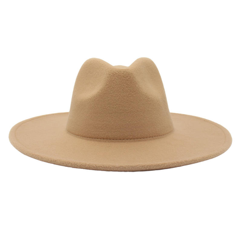 Vente chaude printemps automne hiver Style français blanc grand bord couleur unie Jazz Fedora chapeau pour femmes dame mode robe de plein air