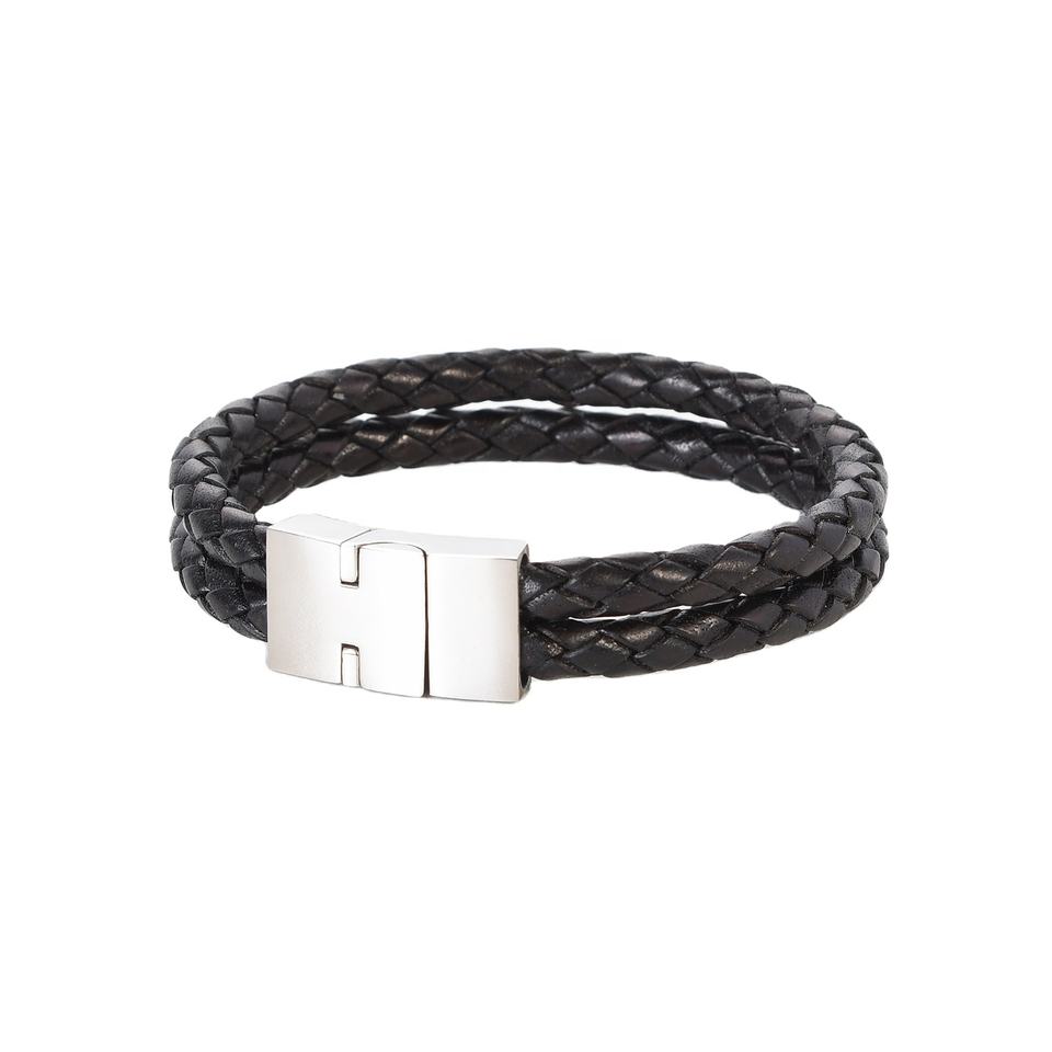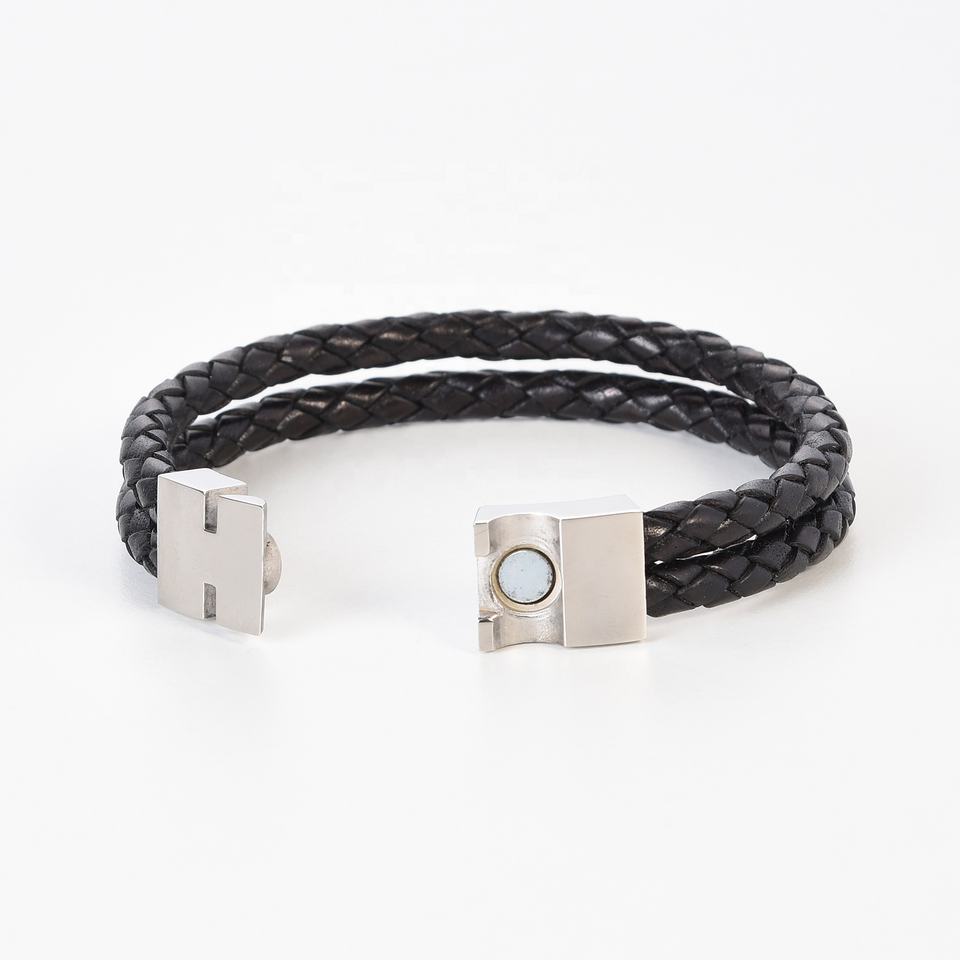 Vente chaude Bijoux En Acier Inoxydable Hommes Véritable Marron Bolo Bracelet En Cuir Tressé Accessoires Pour Hommes