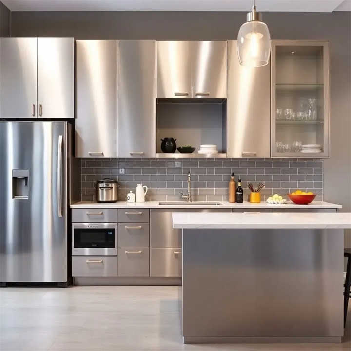 Offre spéciale Armoire de cuisine en acier inoxydable anti-moisissure Double rangée Armoire Zone de cuisson Mobilier moderne durable et robuste