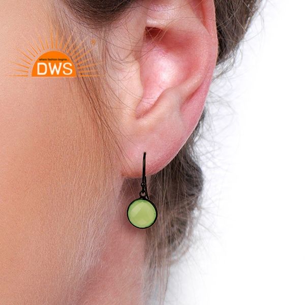 Vente chaude en argent Sterling naturel Prehnite calcédoine pierres précieuses balancent boucle d'oreille bijoux personnalisés pour les femmes cadeau pour elle