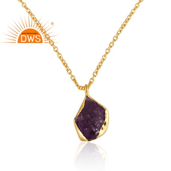 Vente chaude en argent Sterling pépite Design améthyste pierre précieuse plaqué or chaîne en argent pendentif fabricant de bijoux