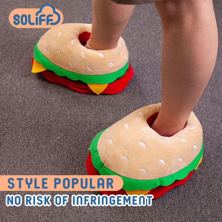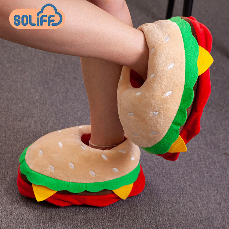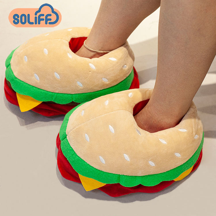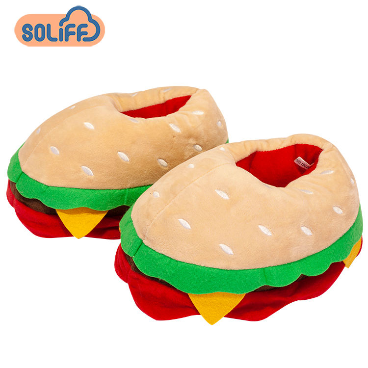 Vente chaude aliments en peluche maison chaussures chaud femmes cadeaux fourrure intérieure en peluche Hamburger frites Pizza pain pantoufles