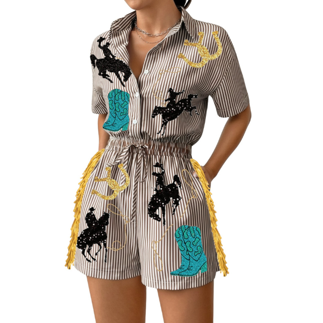 Combinaisons décontractées d'été très tendance, style rétro, taille haute, broderie, super élégantes, confortables, noires, respirantes, uniques, 100% coton