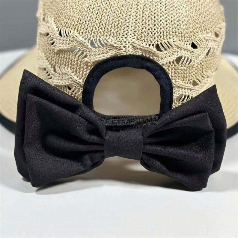 Chapeau de soleil pliable respirant en paille tressée avec large bord et nœud, idéal pour l'été – Nouvelle collection très prisée