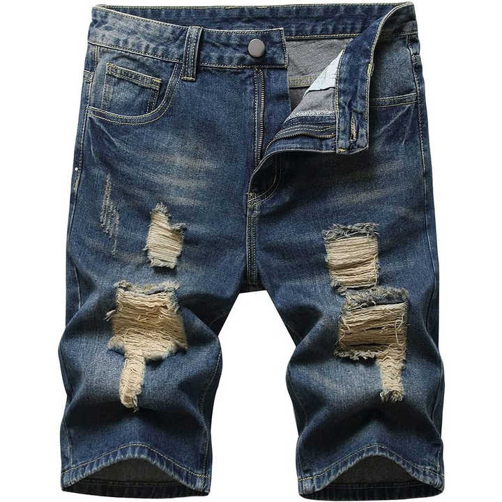 Shorts en jean déchirés et délavés style vintage pour homme, 100 % coton, haute qualité, avec logo frontal – Nouveauté été, vente chaude