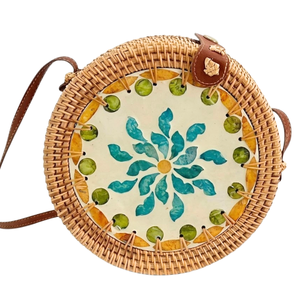 Sac d'été en rotin tressé très tendance, vente en gros avec nacre
