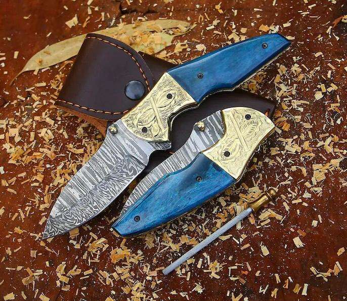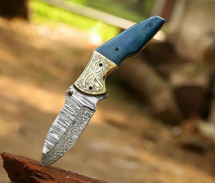 Couteau pliant en acier de Damas