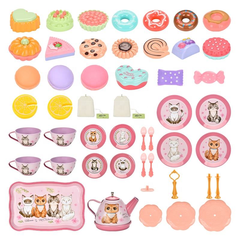 Vente chaude fer blanc métal thé ensemble Roleplay jeu de cuisine avec théière pour les filles fête après-midi thé et jouets éducatifs pour les enfants