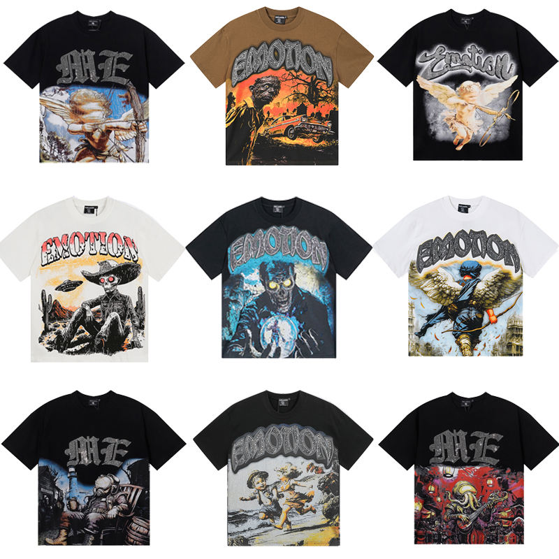 T-shirt à manches courtes en coton tendance pour homme, imprimé rétro MIXED EMOTIONS, tendance streetwear, décontracté, hip-hop, de haute qualité, vente chaude