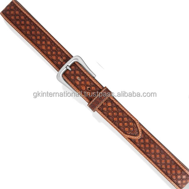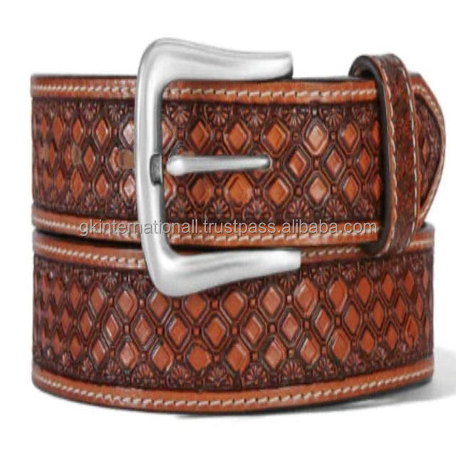 Ceinture d'outillage à la main en cuir western pleine fleur tan de qualité supérieure avec conception de tissage ceinture de cow-boy en cuir repoussé