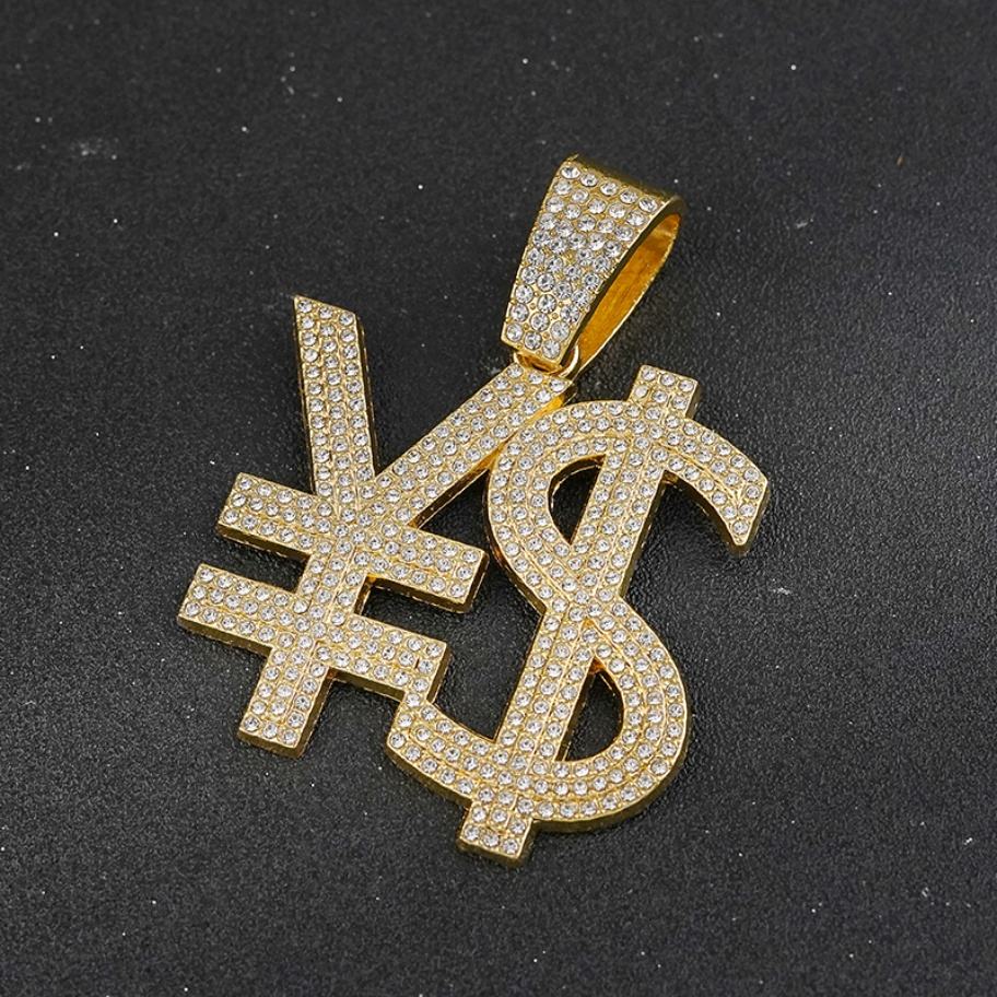 Collier Hip-Hop Rappeur Américain Diamant Brillant Lettre Pendentif Symbole Dollar et RMB Danse Hiphop – Meilleure Vente