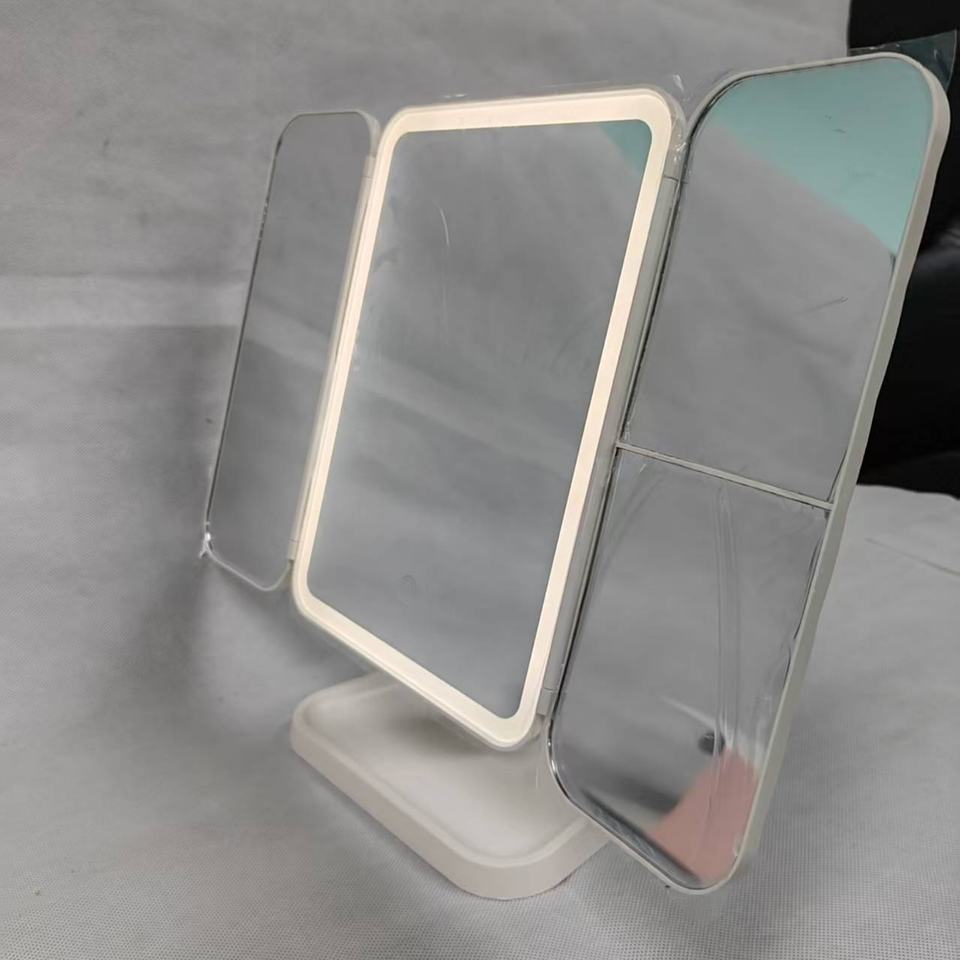 Miroir de maquillage LED pliable à trois volets avec écran tactile et chargement USB, le plus vendu