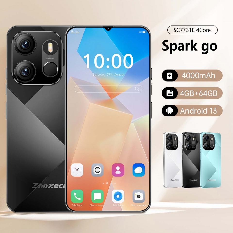 Smartphone ZNNXECC Spark Go 4GB+64GB à écran HD de 6,6 pouces, version améliorée, avec prise en charge du français et du allemand – Meilleures ventes