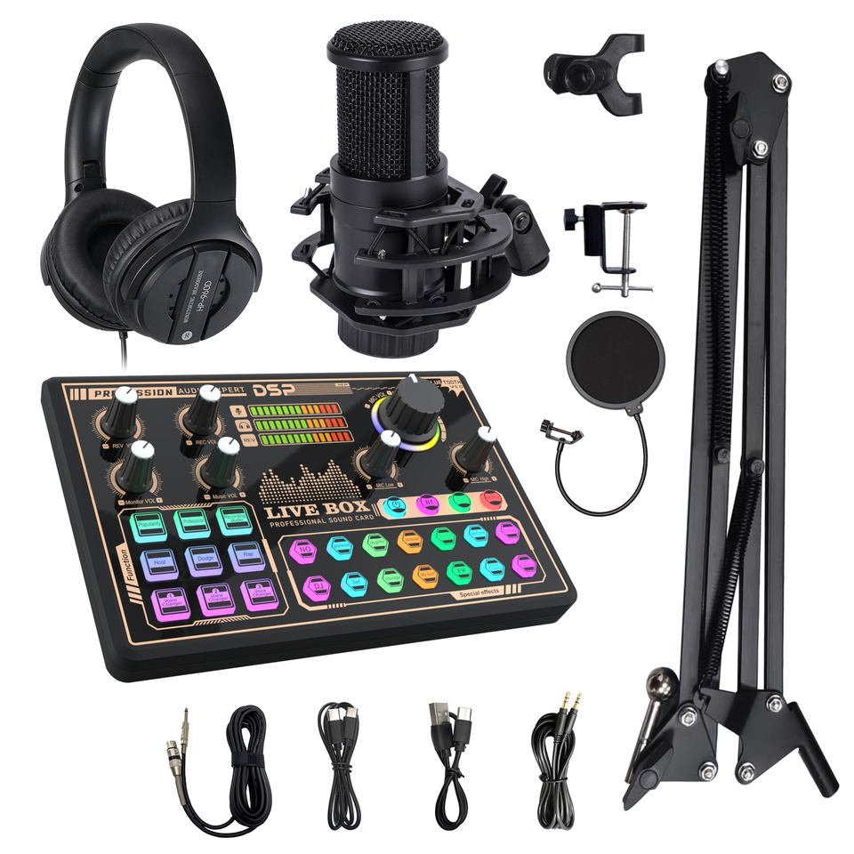 Carte Son V9 Haut de Gamme Podcast Enregistrement de Bureau Musical Kit Complet Microphone Diffusion en Direct avec Casque de Moniteur