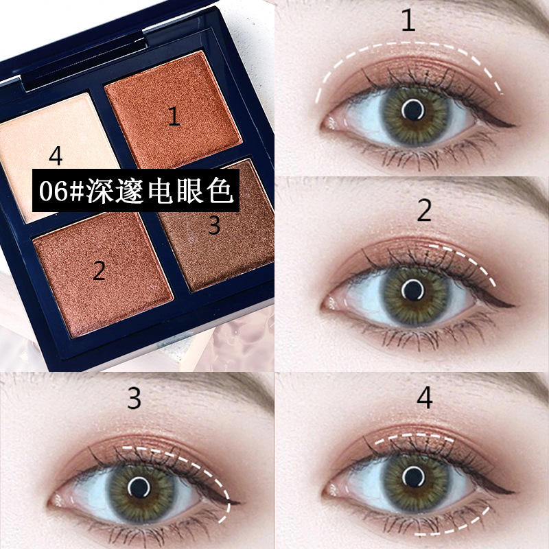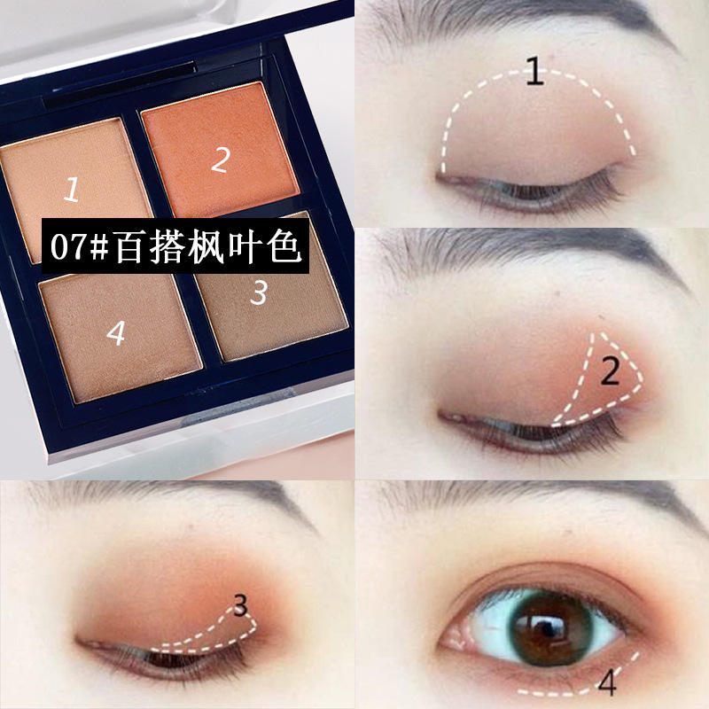 Palette de fards à paupières quatre couleurs effet mat nacré, portable et waterproof, très populaire