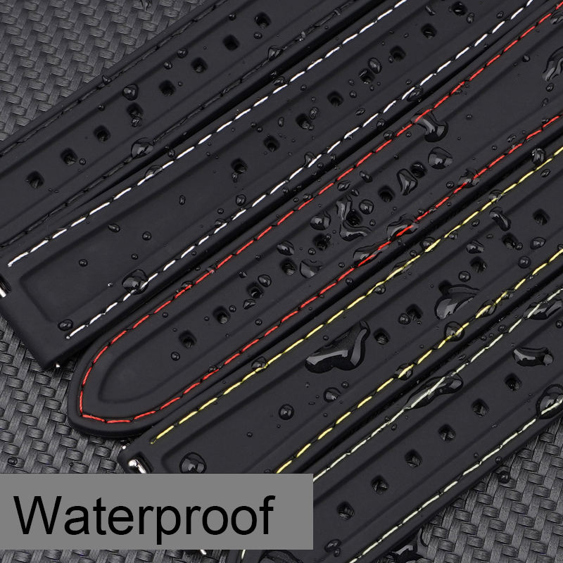 18 20 22 24mm sport différentes coutures noir bleu Silicone caoutchouc bracelet de montre bracelet