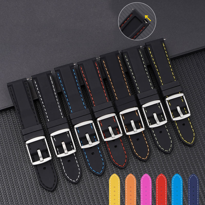 Bracelet de montre en caoutchouc étanche de vente chaude 20 22 24mm bracelet de montre de remplacement à dégagement rapide avec une belle ligne de couture