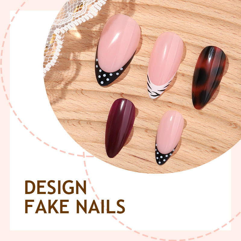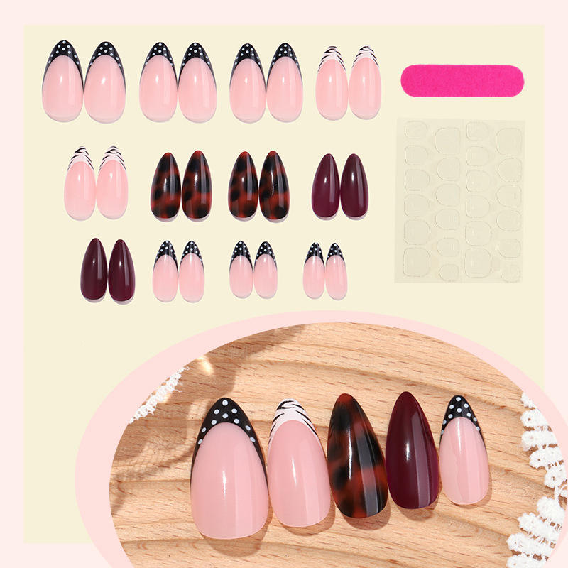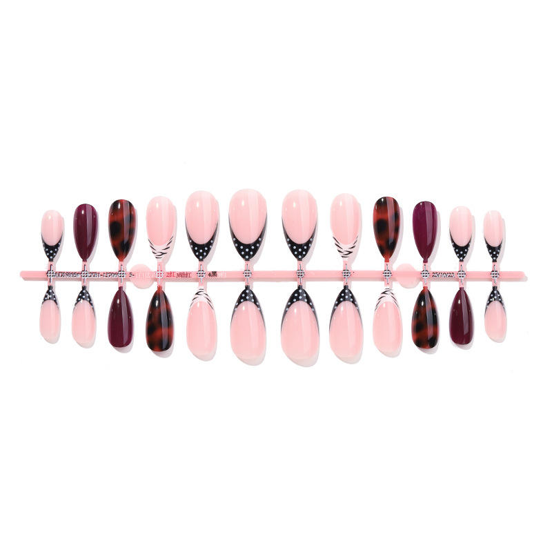 Faux ongles à porter, longueur moyenne, motif léopard, motif vache, finis, 24 pièces, pointes d'ongles en gros, vente chaude