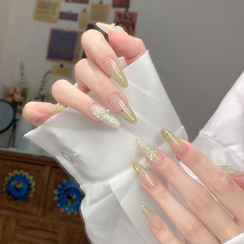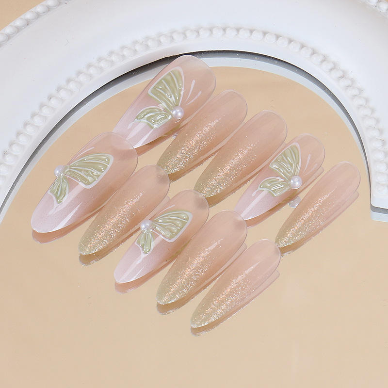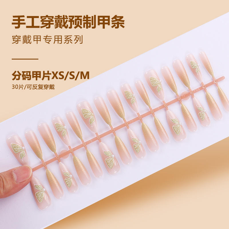 Vente chaude portable ongles en gros dégradé paillettes à la main papillon perle faux ongles autocollants 30 pièces détachables