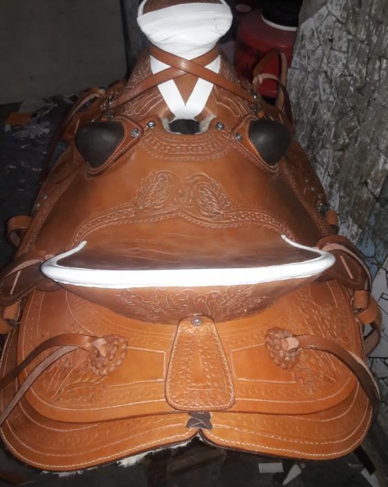 Vente chaude stock de baril de selle d'équitation western en cuir véritable avec vente en gros équestre sculpture à la main
