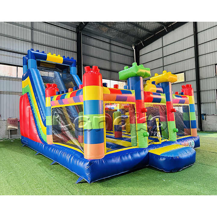 Meilleures ventes : Combo château gonflable commercial combinant toboggan aquatique et sec, avec blocs de construction, pour fêtes