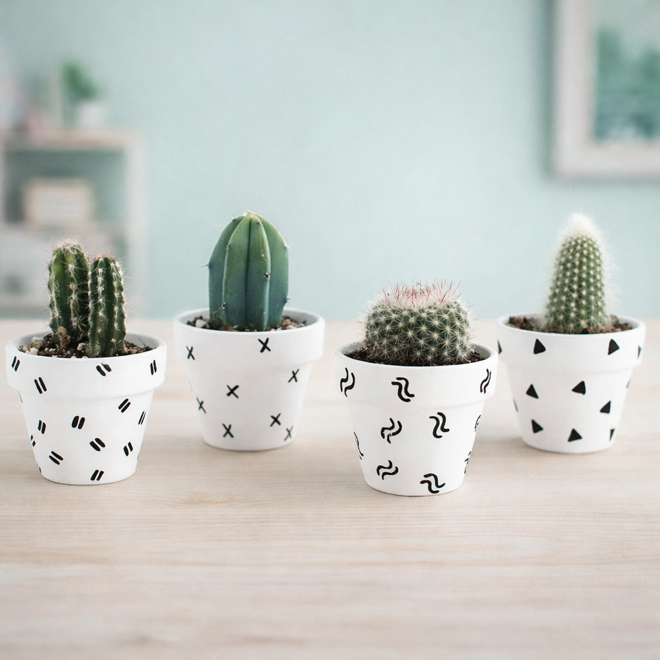 Ensemble de pots de fleurs en céramique blanche très vendus avec motif géométrique peint à la main, support durable pour plantes succulentes et cactus d'intérieur