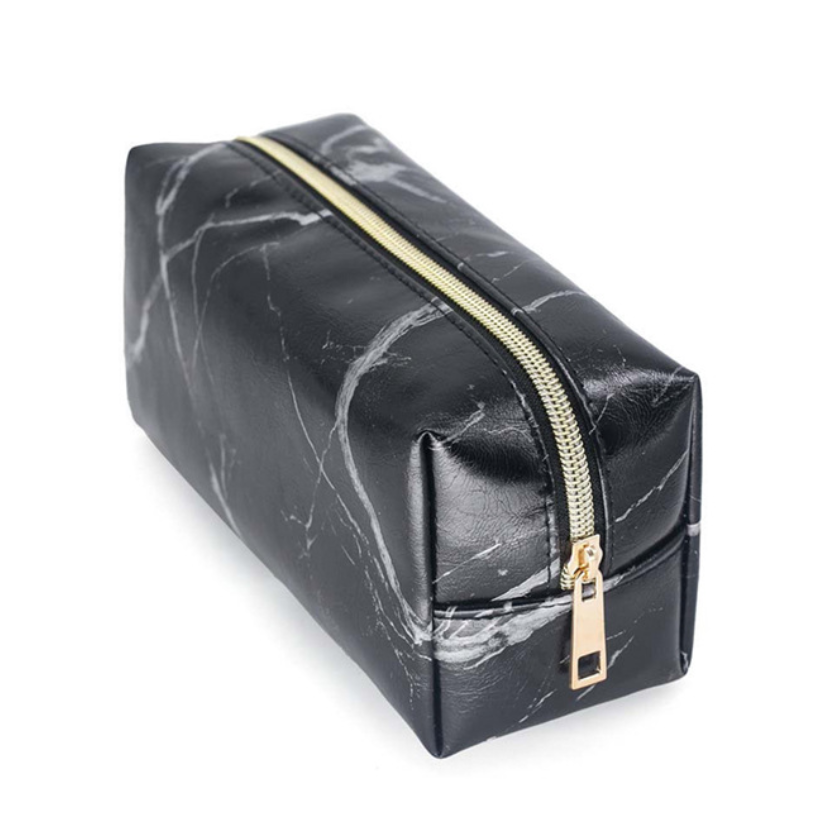 Sac de rangement portable blanc effet marbre avec fermeture éclair dorée pour cosmétiques et pinceaux de maquillage – Vente chaude