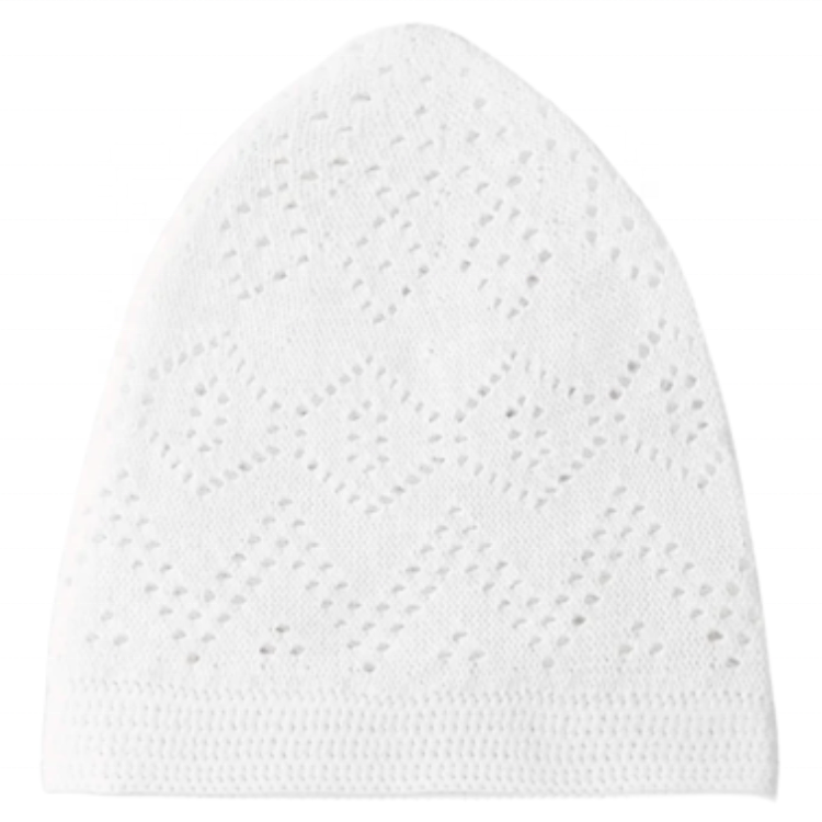 Product Name:Islamic White Muslim Mens Worship Knitting Topi Embossed Kufi