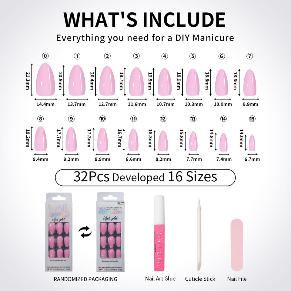 Vente en gros très demandée : 32 faux ongles courts en amande, faits à la main, en gel, couleur unie, paillettes fines Aurora, amovibles, couvrant entièrement l'ongle