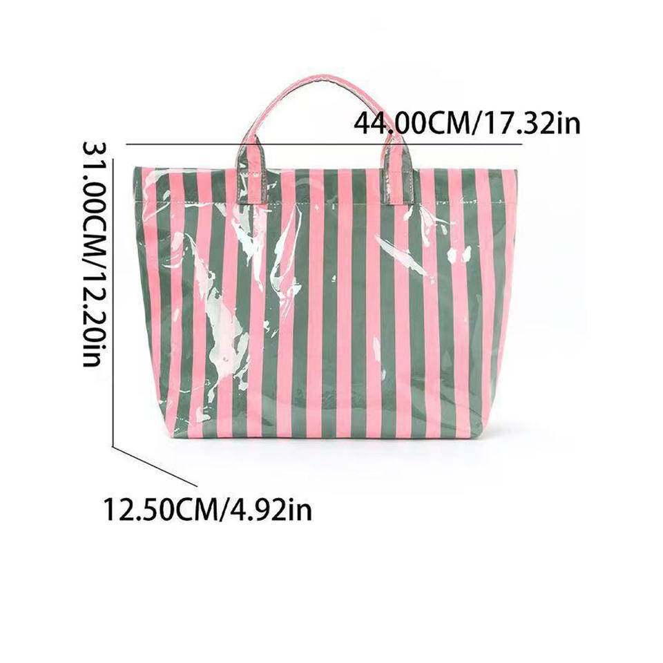 Sac fourre-tout de plage en PVC imperméable et durable, personnalisé, à rayures colorées, pour femme, idéal pour l'été et le shopping – Vente chaude en gros