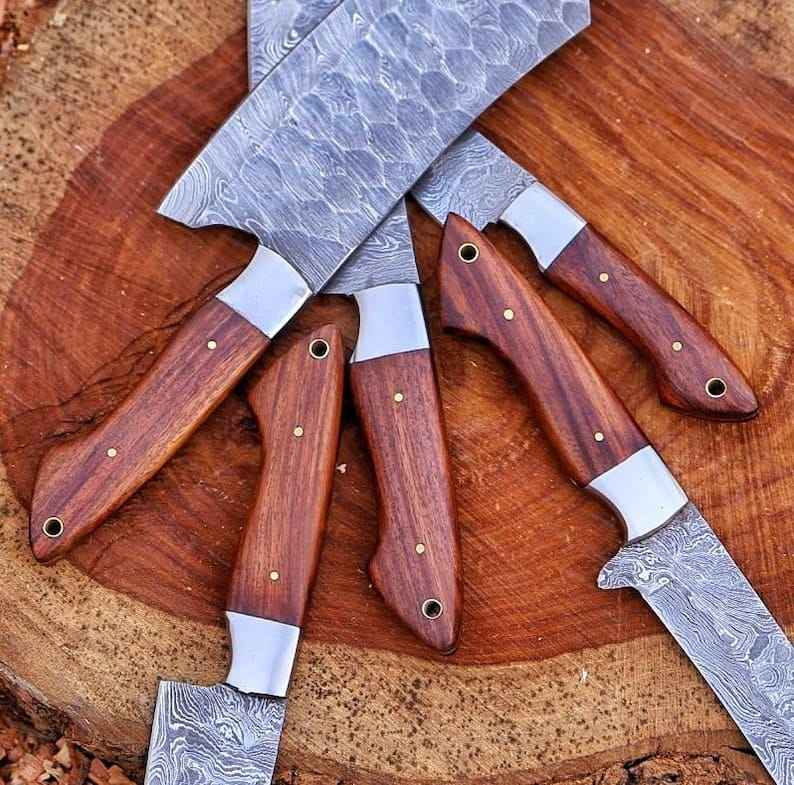 Couteaux de Chef en Acier Damas Forgé à la Main de Qualité Supérieure, Personnalisés, Faits Main, Vente Chaude en Gros, avec Sac en Cuir pour la Survie