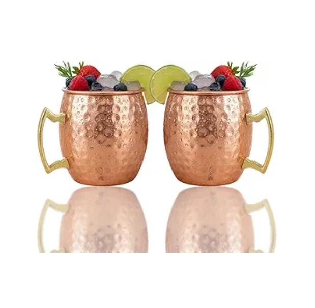 Meilleures ventes à prix bas : Ensemble de 2 tasses Moscow Mule faites à la main en cuivre et acier inoxydable, de qualité supérieure, avec texture martelée