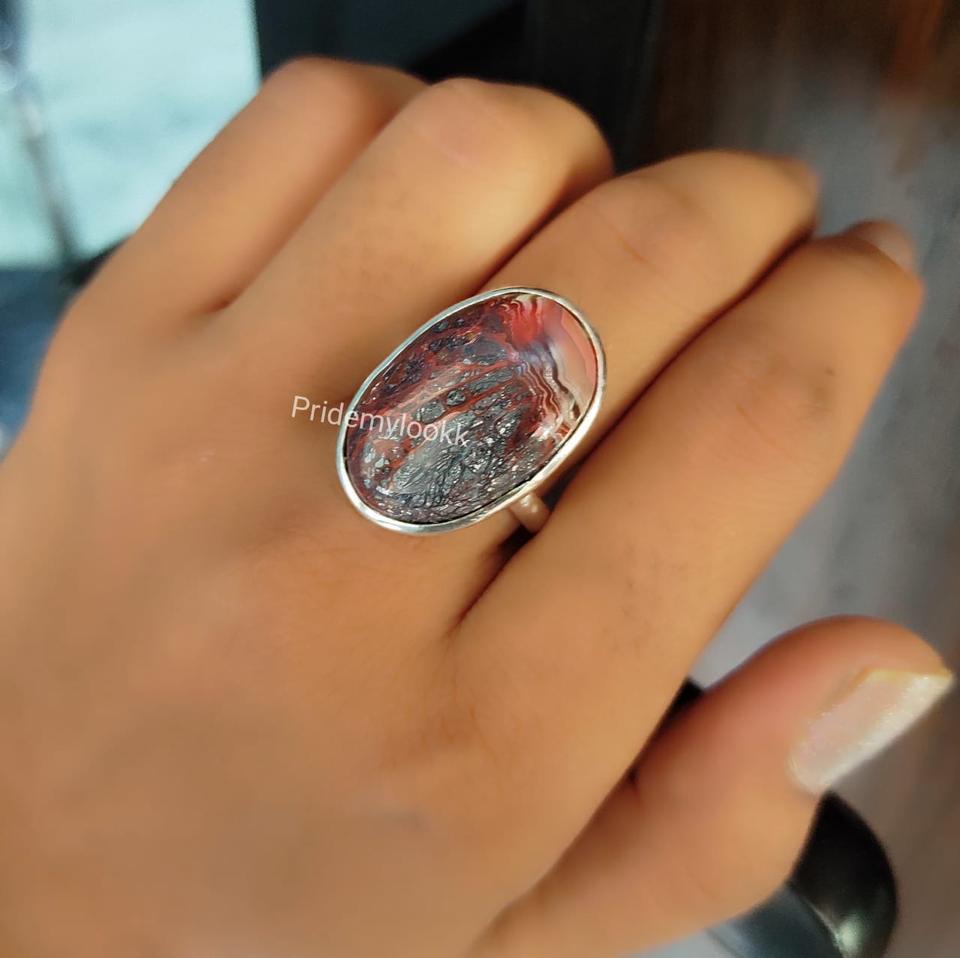 Product name:crazy Lace Agate Sterling Silver Plated Rings