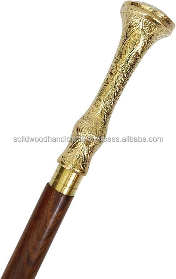 Vente chaude bâton de marche en bois avec nouveau Design poignée en laiton canne de marche pliante cannes de marche décoratives