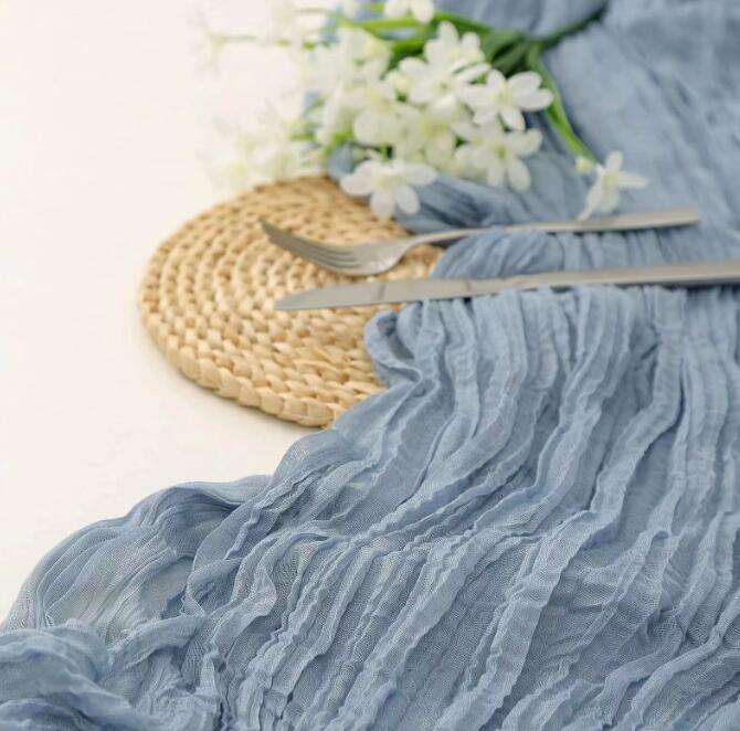 Chemin de Table en gaze froissée pour fête de mariage, décor d'anniversaire, chemin de table en tissu de fromage avec serviettes assorties