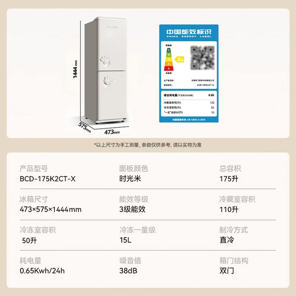 Réfrigérateur rétro à deux portes Xinfei 175L, vente chaude, réfrigérateur compact vintage avec congélateur supérieur pour la maison et l'appartement