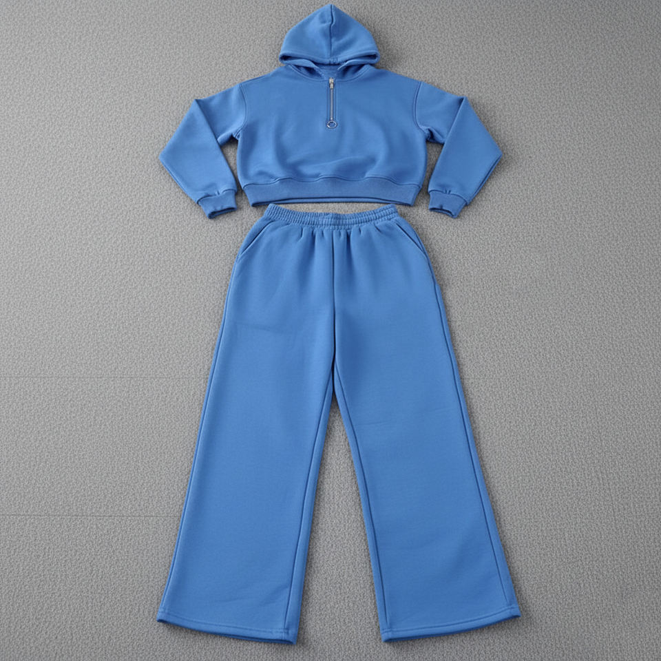Ensemble de survêtement pour femme en coton 100% avec logo brodé personnalisé, dentelle solide, strass, fermeture éclair quart de tour, style streetwear, vente chaude