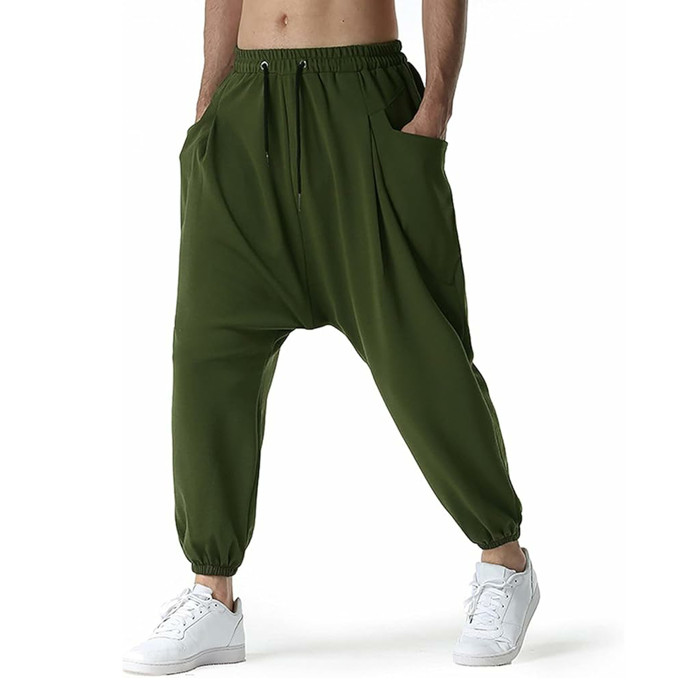 Vente chaude couleur unie hommes goutte entrejambe pantalons de survêtement respirant extérieur longue goutte entrejambe pantalons de survêtement
