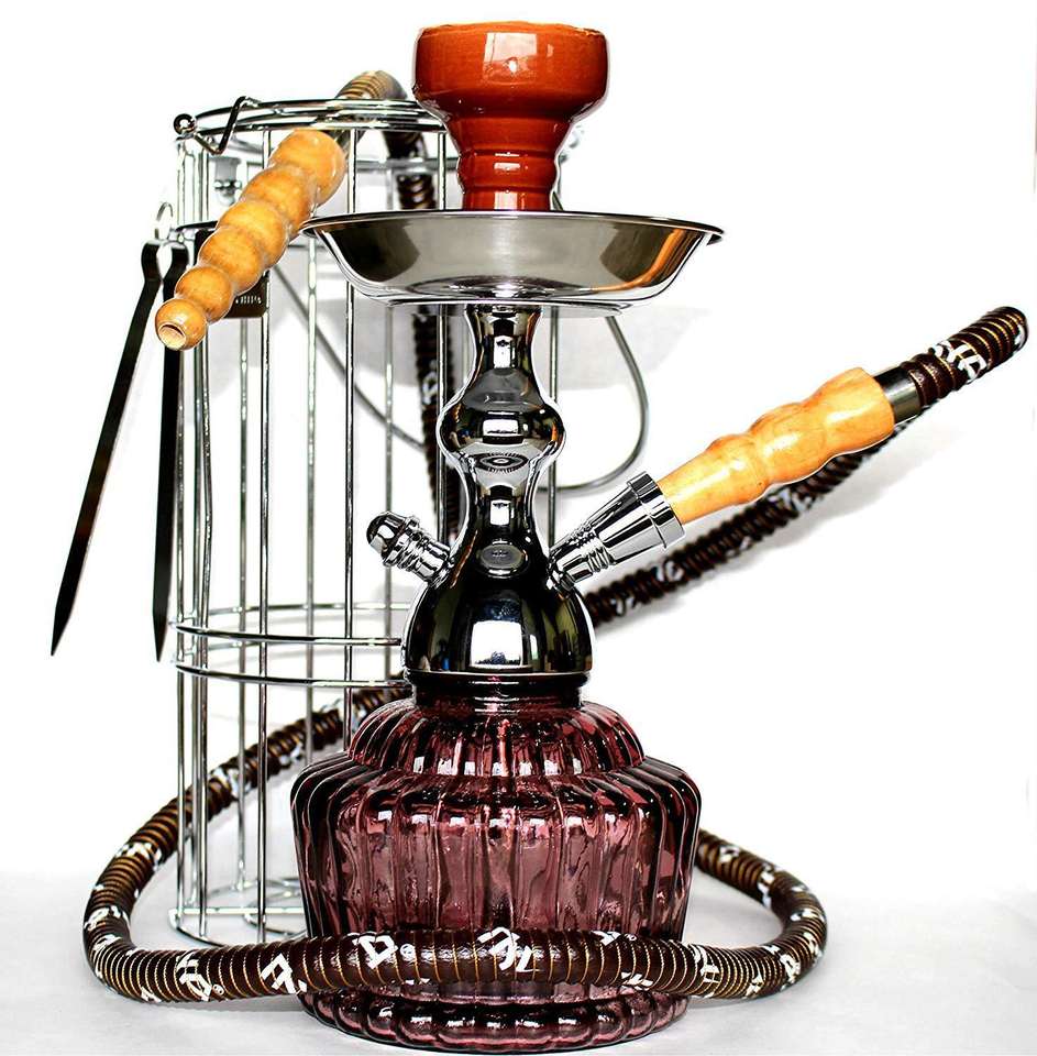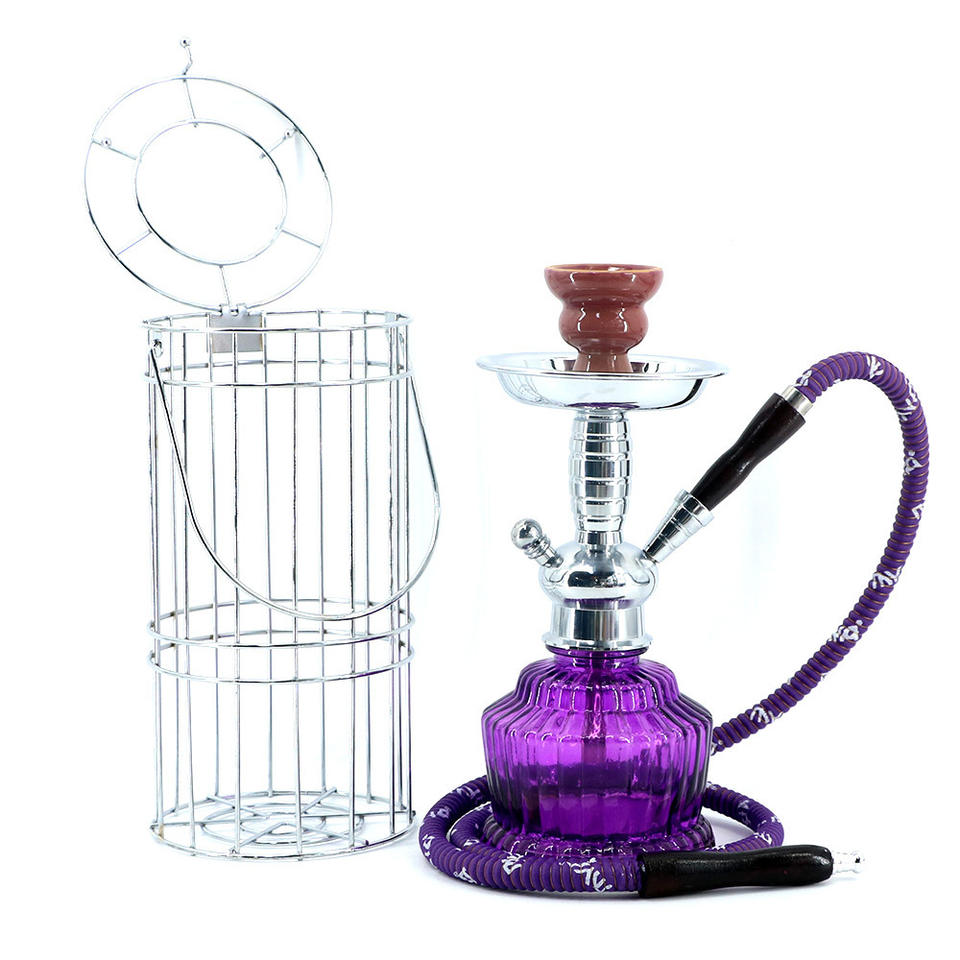 wholesale Single Tube Shisha Hookah Set Hot Selling Customization Portable Middle Glass Iron Cage Hookah