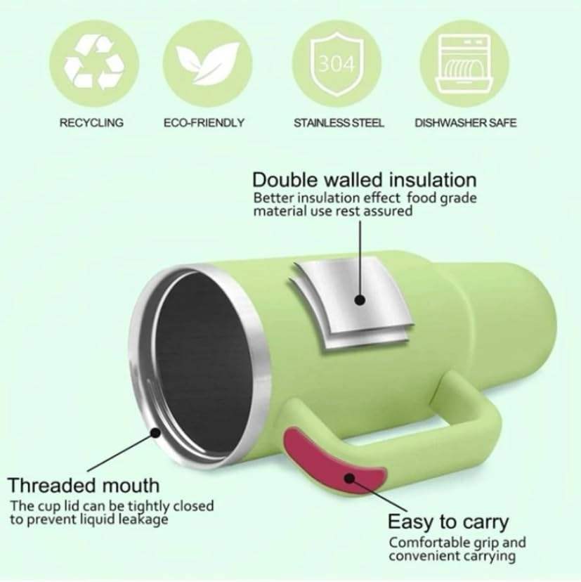 Ventes chaudes, gobelet isotherme personnalisé à double paroi en acier inoxydable, 40 oz, avec poignée et paille, gobelet de voyage pour voiture, cadeau