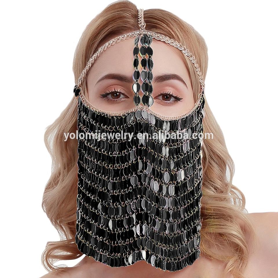 Chaîne de visage sexy et chic, chaîne de tête à pampilles brillantes, strass, masque facial, voile, coiffe