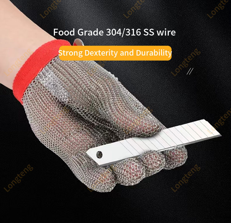 Gants de sécurité en maille d'acier inoxydable anti-coupure EN388/ANSI 5, anti-abrasion ISEA 9, non enduits
