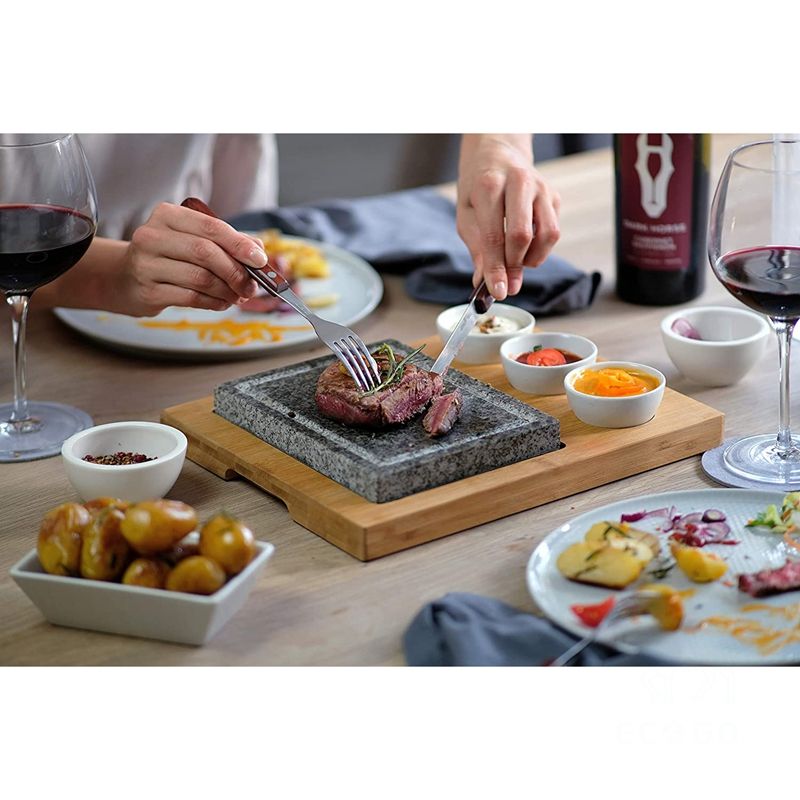 Ensemble de pierres de gril en pierre chaude avec pierre de gril en granit naturel, 3 bols à tremper et assiette en bois de bambou, gril en pierre chaude