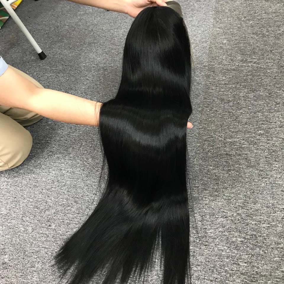 Perruque à fermeture en dentelle HD, cheveux Remy vietnamiens noirs lisses, vente en gros d'extensions de cheveux humains de VQ Hair