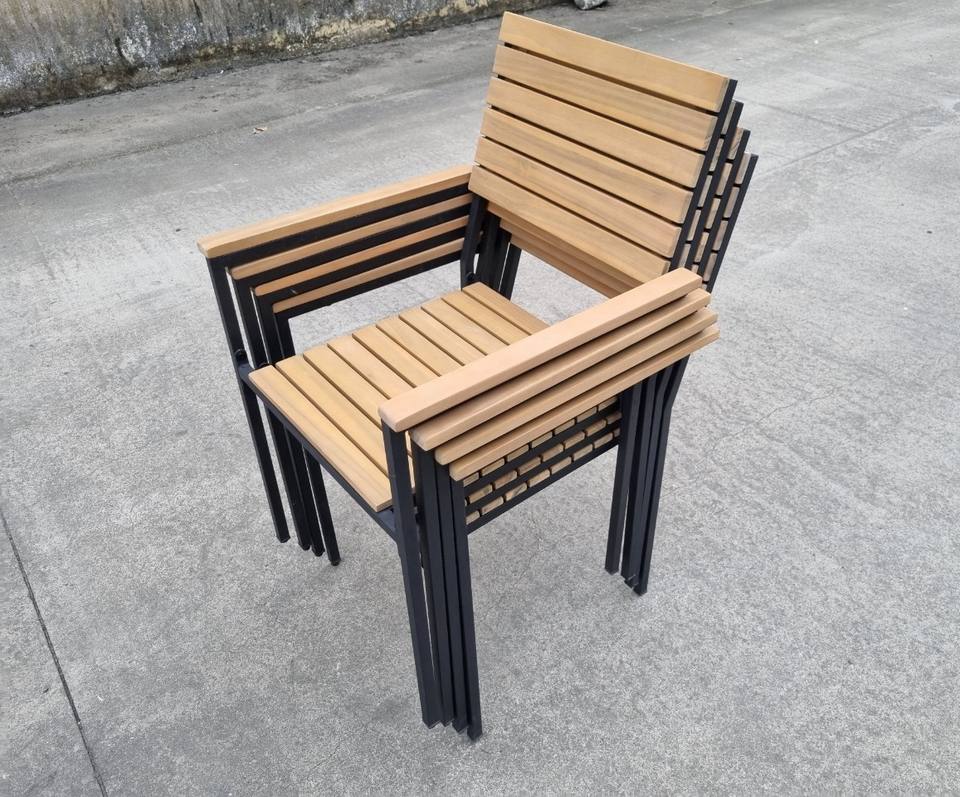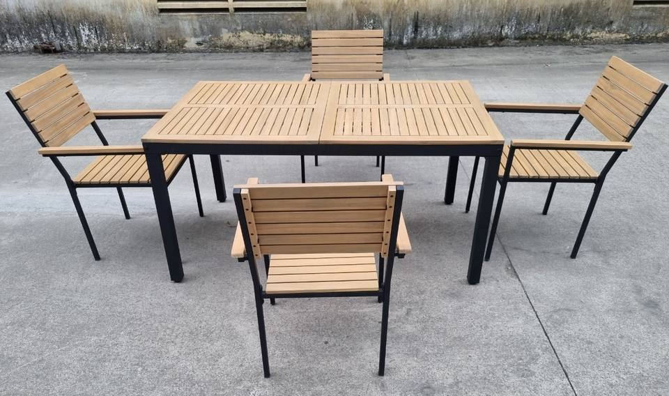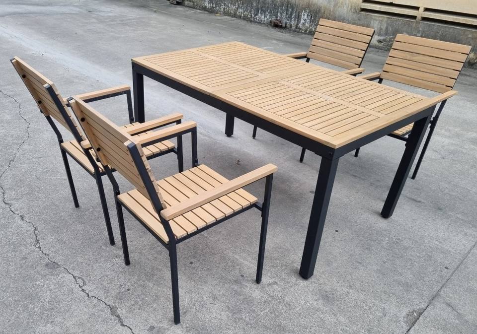 Ensemble de meubles de jardin à manger en acacia 6 places de style chaud 100% polyester avec revêtement en poudre galvanisé en acier pour appartement et villa