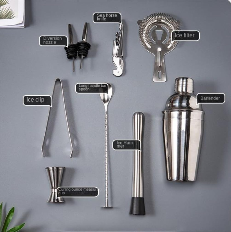 Hot Style Cocktail Mixing Set Bambou Stand Barman Kit En Acier Inoxydable Barman Outils